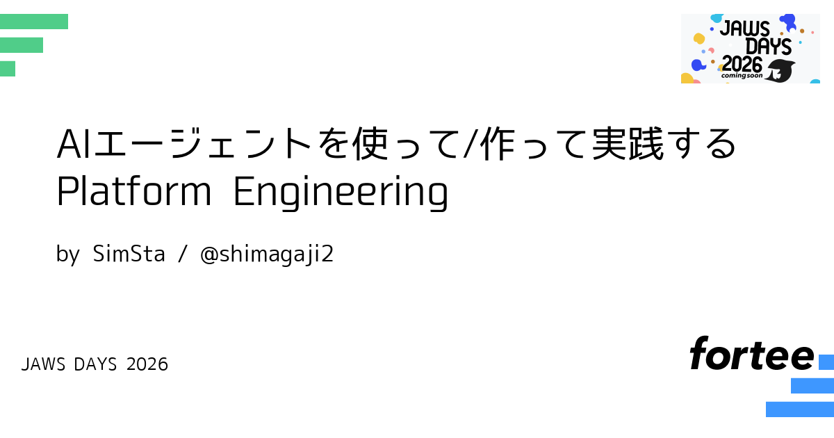 本セッションでは、開発者チームがこれらのAIエージェントを活用して認知負荷を軽減する方法を紹介します。そしてPlatform Engineeringの視点から、マネージドエージェントの活用知見の共有や、カスタムエージェントのセルフサービス提供を通じて、開発者チームをどのように支援できるかを探ります。