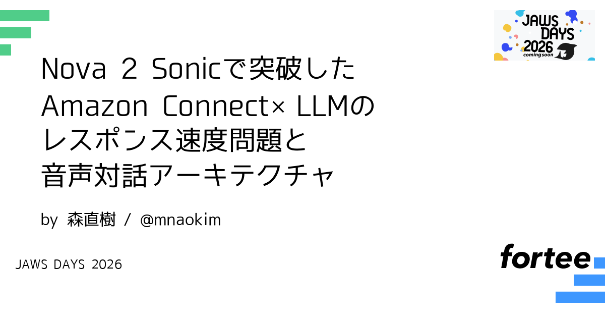 re:Invent 2025にて日本語STS対応のAmazon Nova 2 Sonicが登場し、ストリーミング経由で組み込むことで平均2.65秒まで短縮し、会話体験が大きく向上しました。