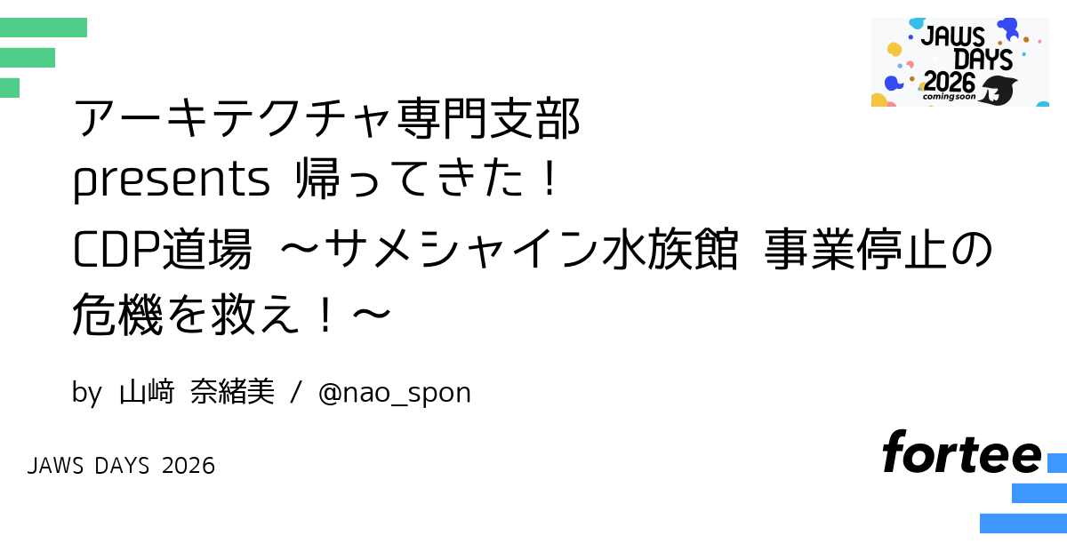 昨年のJAWS DAYSでも好評だった、アーキテクチャ専門支部によるCDP道場を開催します。