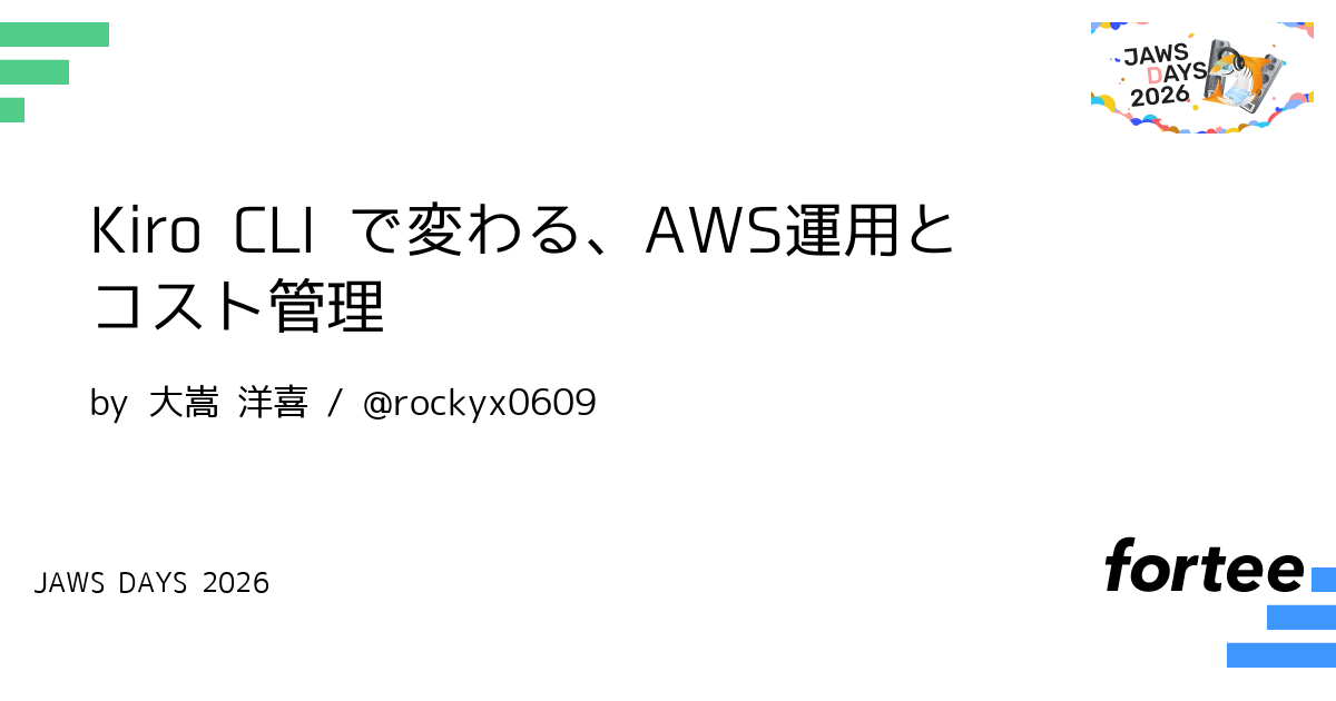 本セッションでは、Kiro CLI を活用することで、こうした「想定外」にも俊敏に対応し、AWS の運用管理を劇的に効率化する方法を紹介します。