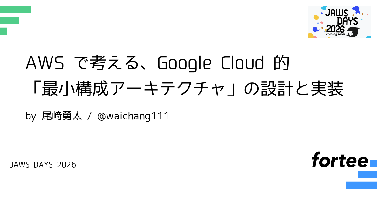 AWS 上でサーバーレスなデータ処理フローを設計する際、Lambda や Step Functions、Athena などの役割分担に悩むことは少なくありません。本セッションでは、Google Cloud における Cloud Run functions・BigQuery・Workflows の構成を参照点とし、これを AWS の API Gateway、Lambda、Step Functions、Athena/DynamoDB に置き換えて再構成します。なぜ AWS では API 入口、処理、状態管理、データ保存を明示的に分離する設計が求められるのか、どこで設計判断や運用負荷が発生するのかを具体例で解説します。AWS を前提としつつ、他クラウドの設計思想を取り入れることで、より納得感のあるアーキテクチャ設計を行うための視点を持ち帰ってもらうことを目的とします。