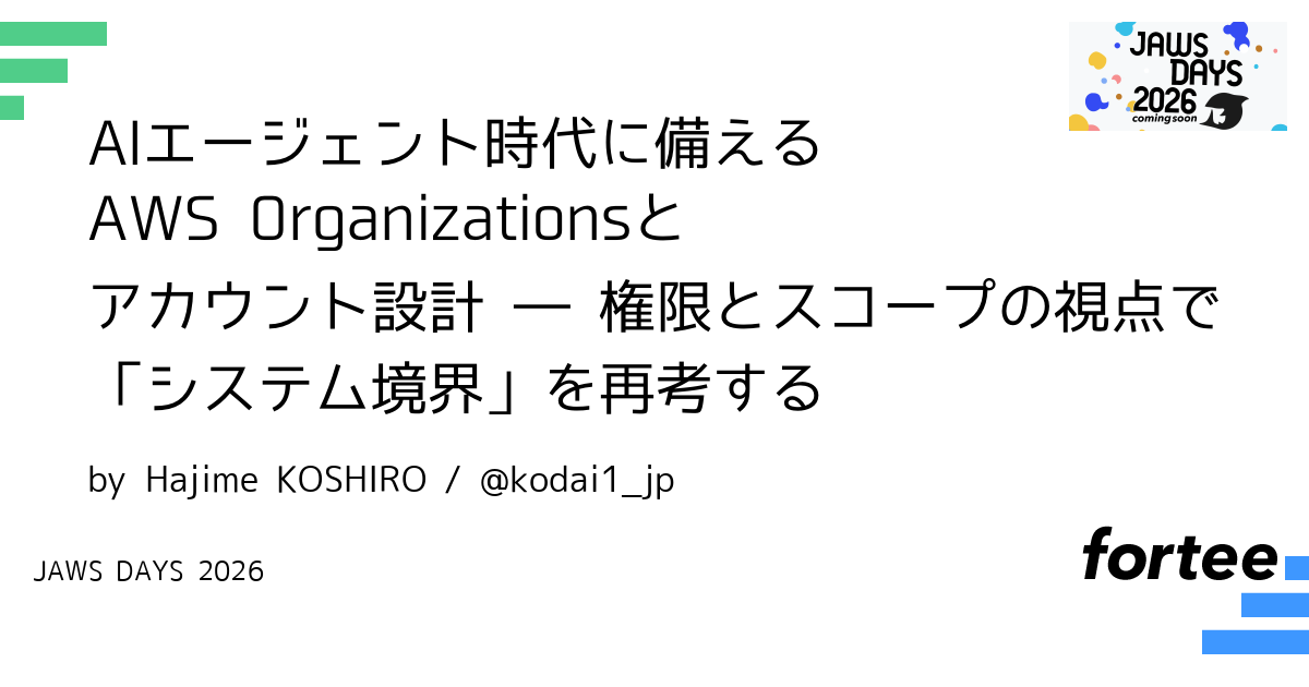 本セッションでは、AWS OrganizationsやAWSアカウントを、権限とスコープの観点からどのようなシステム境界として捉え直しているかを共有します。これからOrganizations運用やアカウント設計を本格化させる方の補助線となることを目指します。