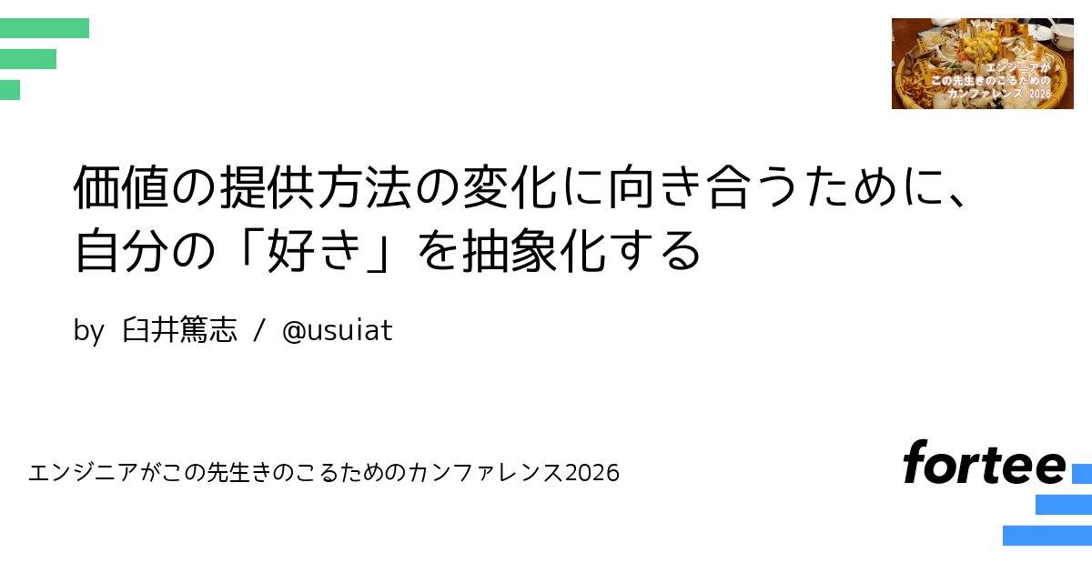 このセッションでは、プロダクトの価値の提供方法に焦点を当て、その変化に追従するために自分の「好き」を抽象化するステップを話します。そして、次の変化を見据えて、自分がどこで価値を出せるかを考えるためのヒントを提供します。