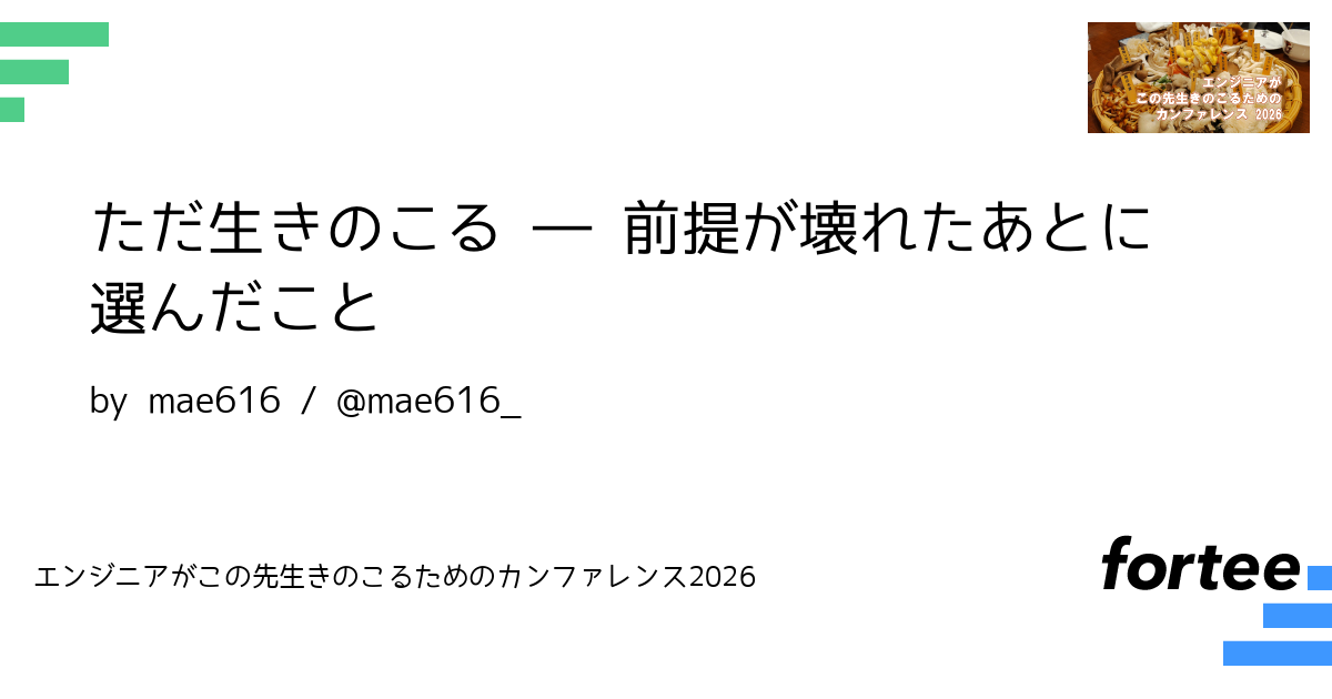 働ける時間、キャリア像、家族や生活、発信の仕方など、これまで当たり前だと思っていた前提が、いくつか同時に成り立たなくなった時期がありました。その中で、エンジニアとして何を続け、何を手放すのかを考え直す必要がありました。