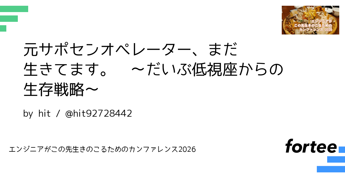 自分の失敗と反省、そして同僚たちの現在から考える、変化に適応しつつ自分の軸を持ち、なにより病まずに生き残るTipsを、えらい低い視座からお話します。