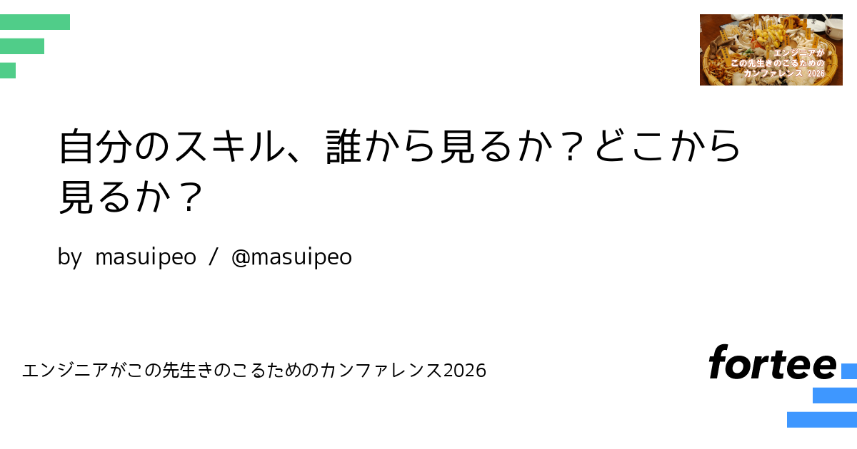 そこで本セッションでは、「誰から見るか」「どこから見るか」によってスキルの見せ方・伝え方がどのように変わるかを紹介します。