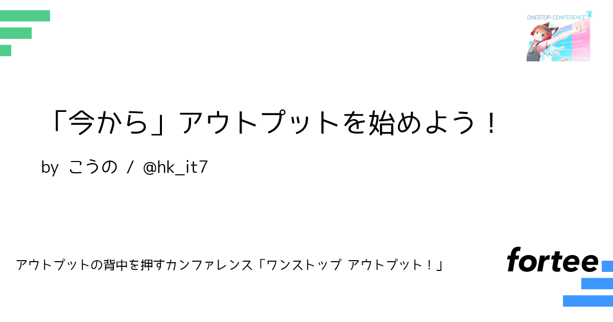 この登壇はアウトプットとは何かを考え直し、アウトプットへのハードルを下げることを目的としています。