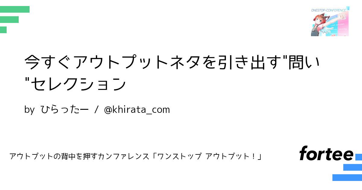 このLTでは、みんなのアウトプットネタを引き出すための質問(問い)を、根拠とともにいくつか紹介します。
