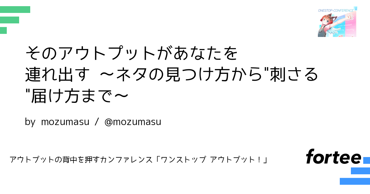 このセッションでは、体験談に加えて、私なりのアウトプット術、得られたものをお話しします。