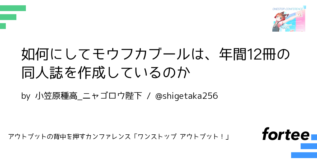 ということで、三歩歩くと同人誌を作っているという噂の我々モウフカブールが、どのように同人誌を作っているのかについてお話します。