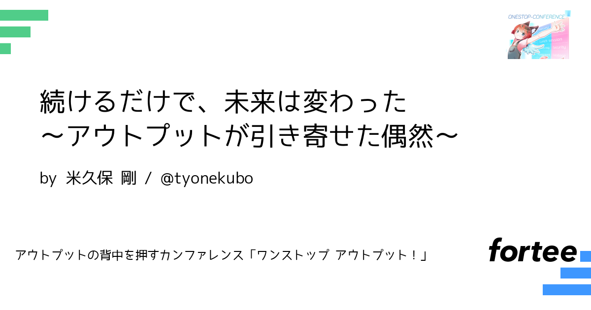 思いもよらぬチャンスを引き寄せるために、あなたならではのアウトプットについて考えるきっかけとなれば幸いです。
