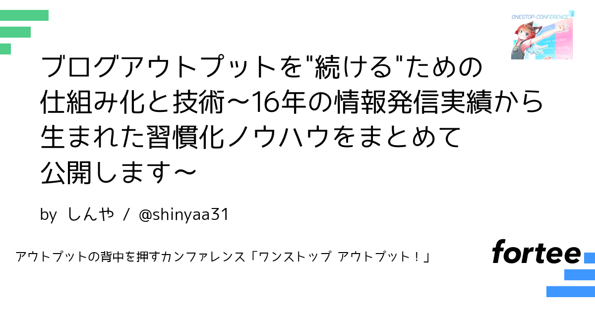 個人及び組織でブログアウトプットを"続ける"ための実践術を余すこと無く共有します。