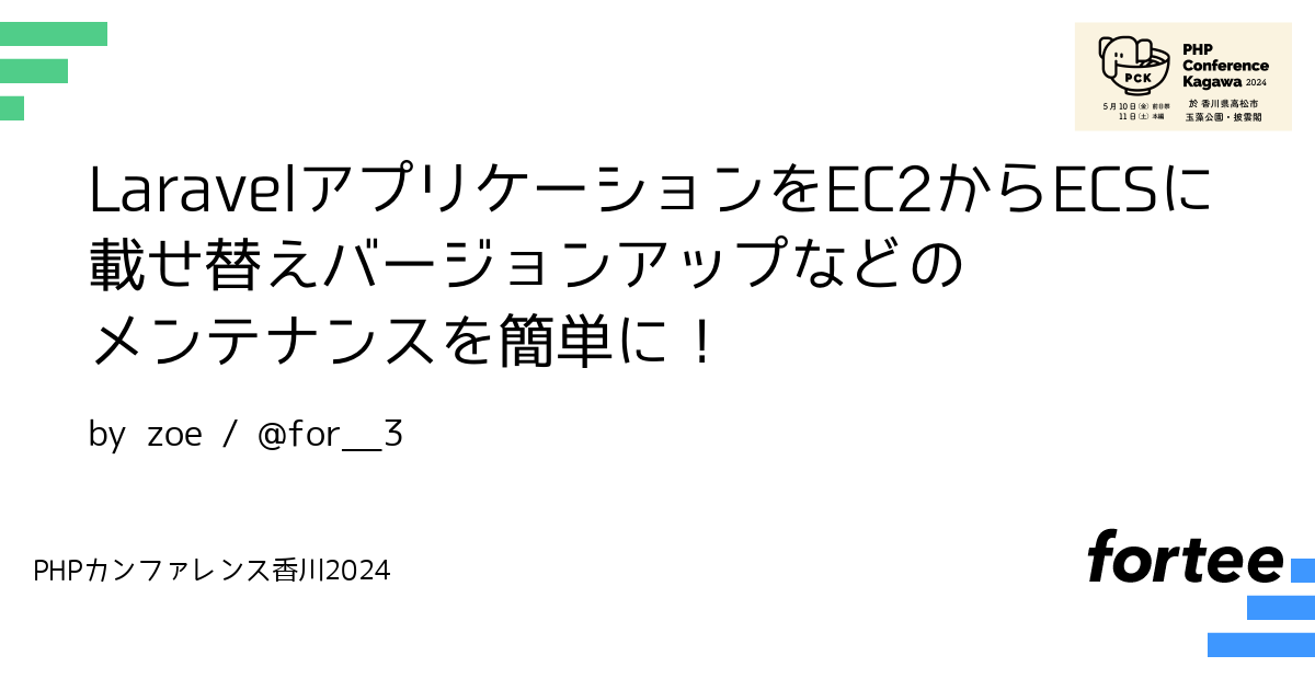このトークでは、EC2で管理していたLaravelアプリケーションをECSに移行するために考える必要があるポイントや移行のために必要な手順、デプロイの仕組み、ECSで運用する際に便利だったツール(ecspresso)などをお話します。