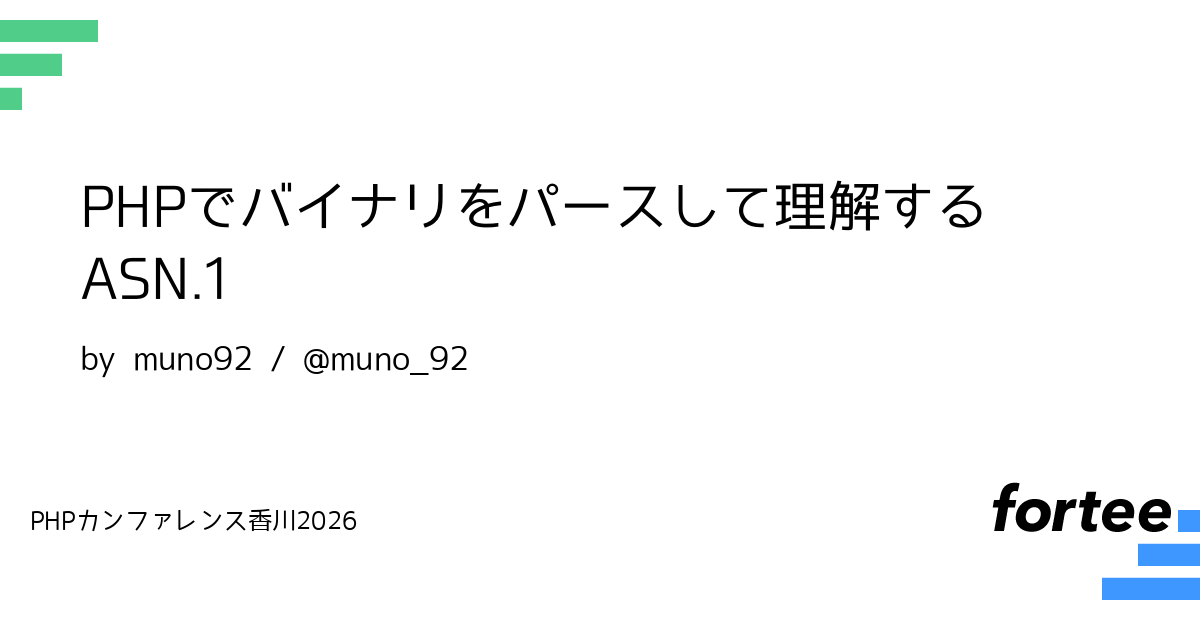 このトークでは証明書からシリアル番号や発行者情報・有効期限などを取り出す実装を例とし、以下について発表します。