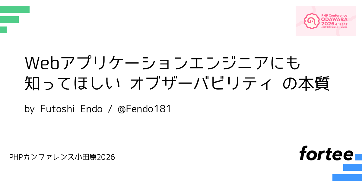 Webアプリケーションの設計・実装段階から オブザーバビリティ を意識することで、障害調査が速くなったり、チームの運用負荷が下がる、といった効果を得ることができます。