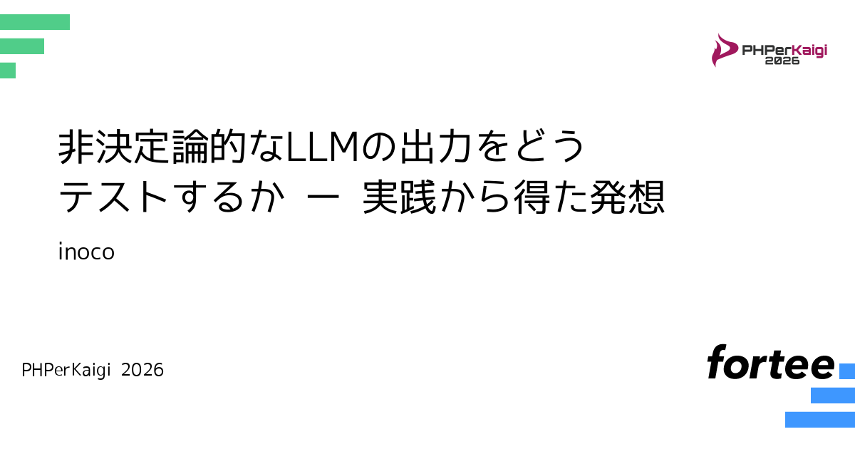 AIをプロダクトに組み込んだとき、従来なかった壁にぶつかりました。実行する度に結果が揺れる非決定論的な出力に対して、どうテストすればよいのか。完全一致を求める従来のアサーションは使えず、人の目での検証には時間がかかり、バリエーションが増えるたびにデグレチェックが困難になるという問題です。