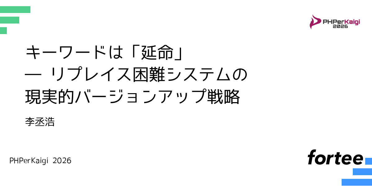 新規開発を停止している以上、「リファクタリングしてから」「テストを書いてから」と時間をかけることはできません。システムの詳細を理解している人がいない以上、少しでもリスクのある修正は取り入れられません。このような強い制約の下での現実的バージョンアップ戦略を共有します。理解度の低いシステムに対するPHPバージョンアップへの不安を解消し、具体的な対策を持ち帰っていただける内容です。