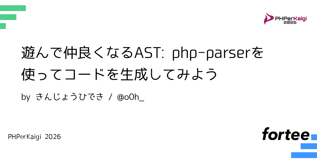 扱う内容は、「ASTを活用して、PHPのコードを生成する」です。