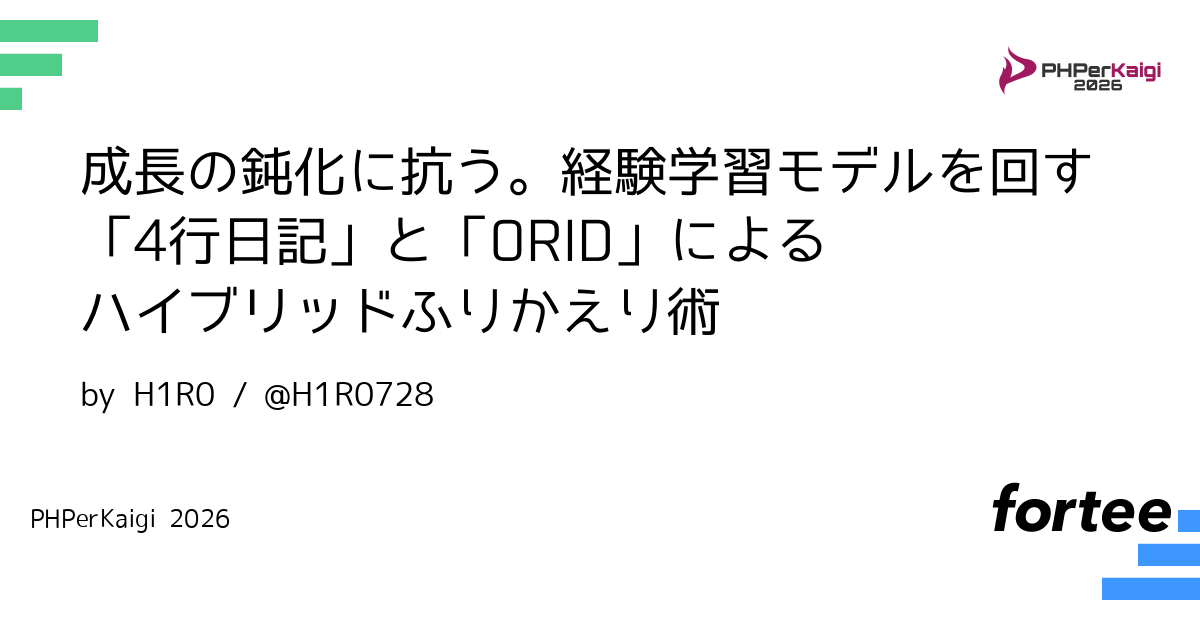 本セッションでは、日々の業務経験を確実なスキルへと変換するために私が実践している、2 つのフレームワークを組み合わせたふりかえり手法をご紹介します。