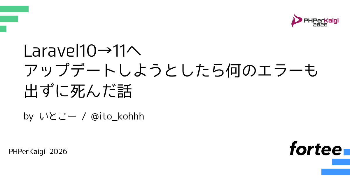私たちのチームは段階的にLaravelのアップデートを行い、最終的に9から12まで上げることに成功しました。