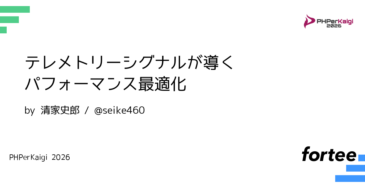 本セッションでは、PHPアプリケーションに対してテレメトリーシグナルを活用したパフォーマンス改善の具体的な手法をお伝えします