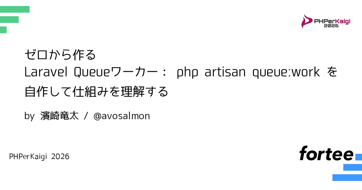 このトークでは、ライブコーディングを中心に、LaravelのQueueワーカーをゼロから(ただし必要最小限に簡素化して)実装しながら、php artisan queue:work が実際に何をしているのかを順番に解説します。
