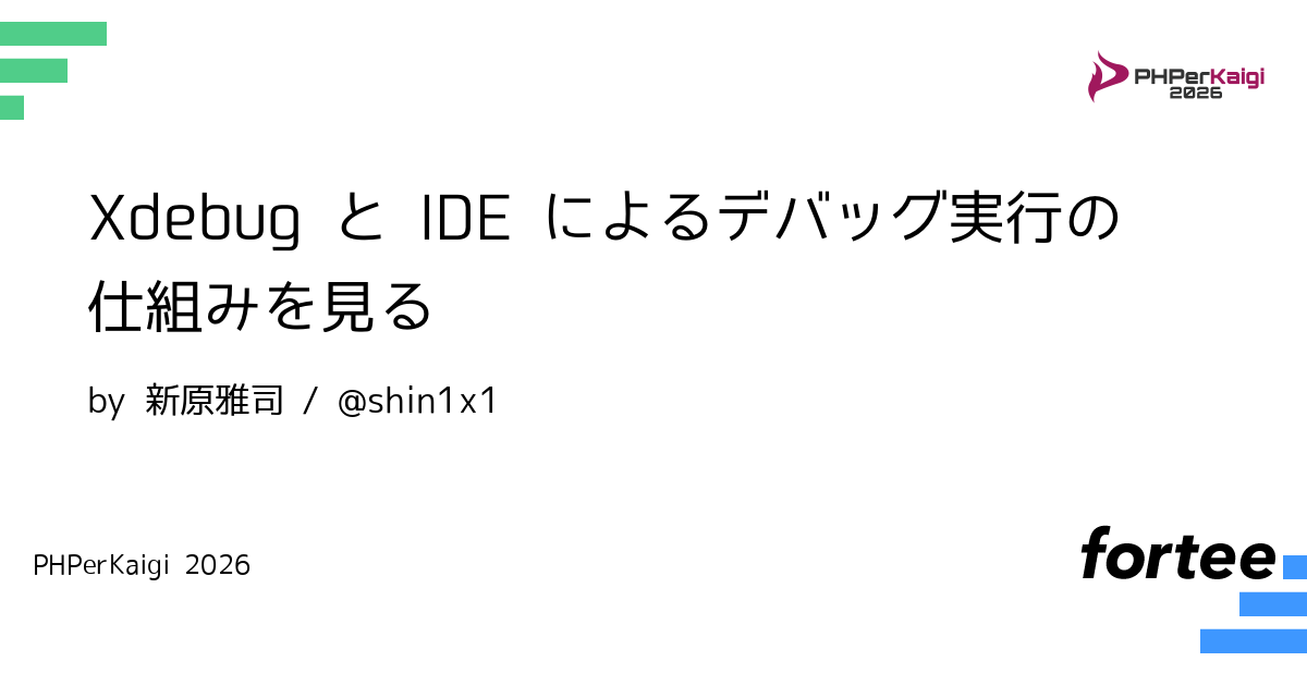 本セッションでは、Xdebug の内部動作や IDE との通信に焦点を当てて、どのような仕組みでデバッグ実行が実現しているかを見てみましょう。