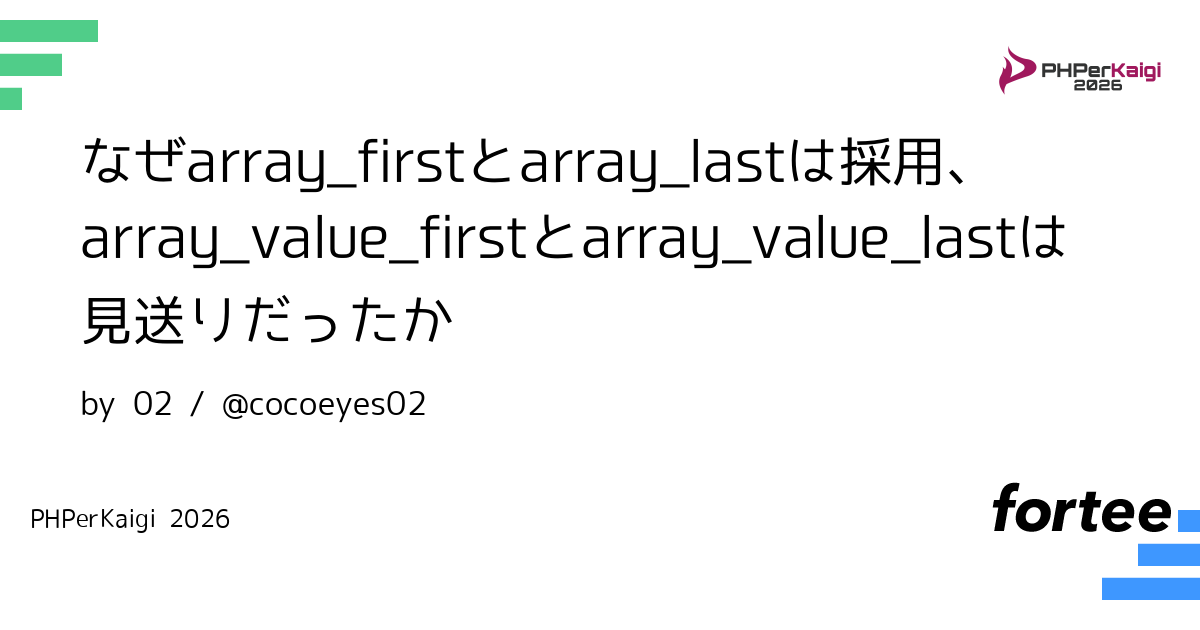 本LTでは、array_first / array_lastの紹介に留まらず、array_value_first / array_value_lastのRFCが否決された背景や理由と、今回array_first / array_lastのRFCが可決された背景や理由を比較・解説します。