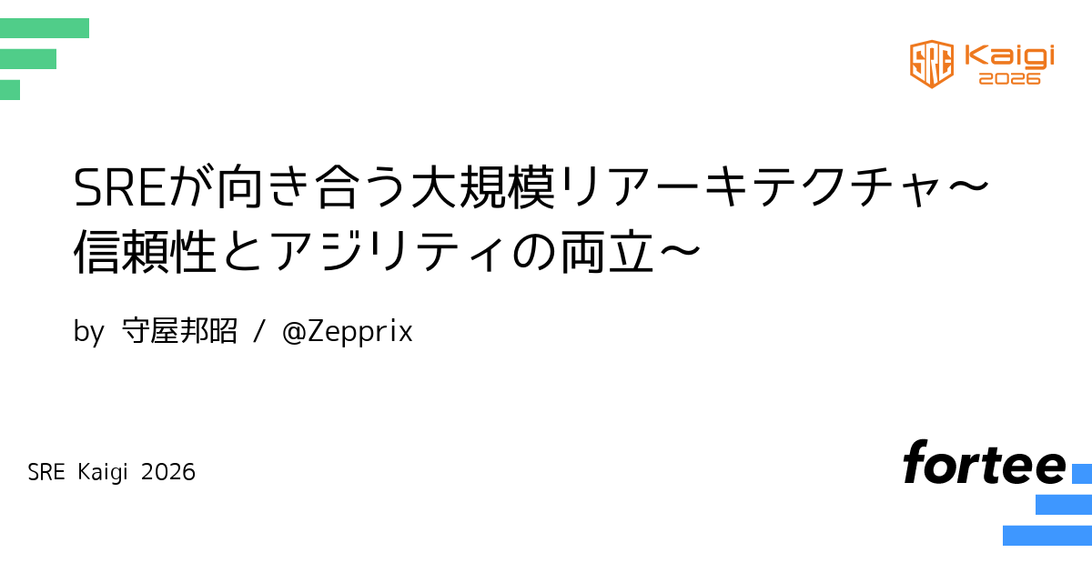 Web アプリケーションとバッチ処理で構築された金融機関向けプロダクトを、本番稼働を止めることなく大規模にリアーキテクチャした実践事例を紹介します。成長に伴い複雑化する顧客要件に対応するため、DB スキーマレベルから再設計することを決断しました。SRE としては、信頼性を高める設計と、顧客影響を最小化する移行戦略の両面に取り組みました。