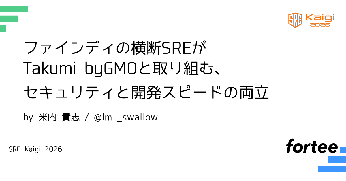 2025年3月の「Findy Team+」SOC2 Type2取得に代表されるように、ファインディの横断SREチームは監査準備やセキュリティ強化を実践してきました。この負荷が開発を圧迫しないよう段階的な導入やベンダーとの分担を進めた事例をファインディ株式会社 SRE 安達氏から紹介します。
