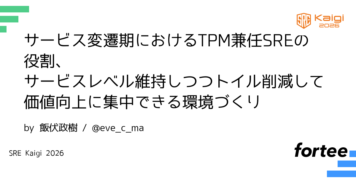 「サービス変遷期におけるTPM兼任SREの役割、サービスレベル維持しつつトイル削減して価値向上に集中できる環境づくり」