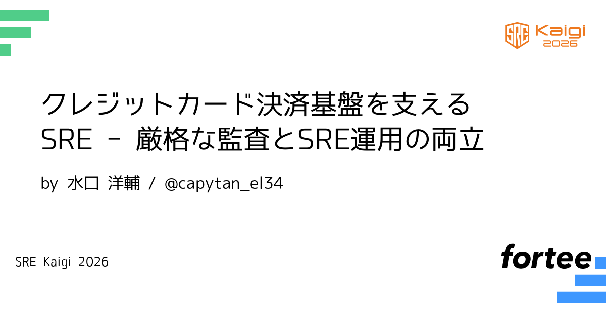 本セッションでは、当社のAI家計簿サービスでのSRE実践を通じて、クレジットカード決済基盤で実践してきた具体的なアプローチを共有します。PCI DSSという厳格な制約から学んだ、セキュリティ要件を設計要素として扱うインフラ設計の考え方を紹介します。