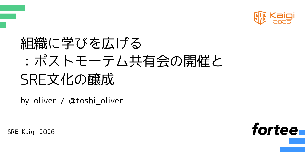本発表では、この失敗と改善のプロセスを紹介し、インシデントを組織全体の学びに変える仕組みづくりと、そこから広がるSRE文化醸成の実践知を共有します。