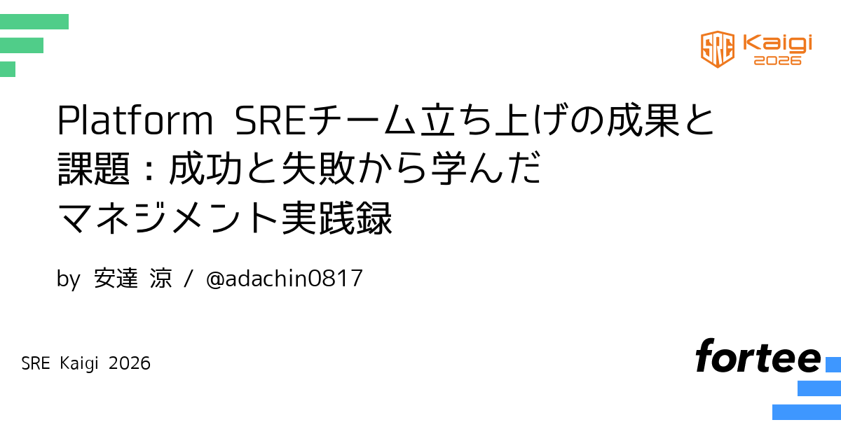 2024年からFindyにて横断的なPlatform SREチームを立ち上げ、サービス横断のインフラ・セキュリティ・運用基盤を整備してきました。この二年間で、SLI/SLO策定、DatadogやAmazon Security Lakeの導入、TerraformによるIaC推進と汎用モジュール、Shisho CloudとTakumiによるセキュリティ運用、SOC2取得といった大きな取り組みを進めてきました。技術面に加えて、チームを「組織」として育てるマネジメントに多くの試行錯誤がありました。本発表では、複数プロダクトを支援する際の優先順位付けの難しさ、1on1や目標設定・ナレッジ共有の実践と失敗例、セキュリティ・信頼性と開発スピードのバランスをどう取ったか、チームが自律的に動けるようになるまでに必要だった仕組みづくりを共有します。SRE立ち上げの成果と課題を率直に語り、具体的なヒントを提供します。
