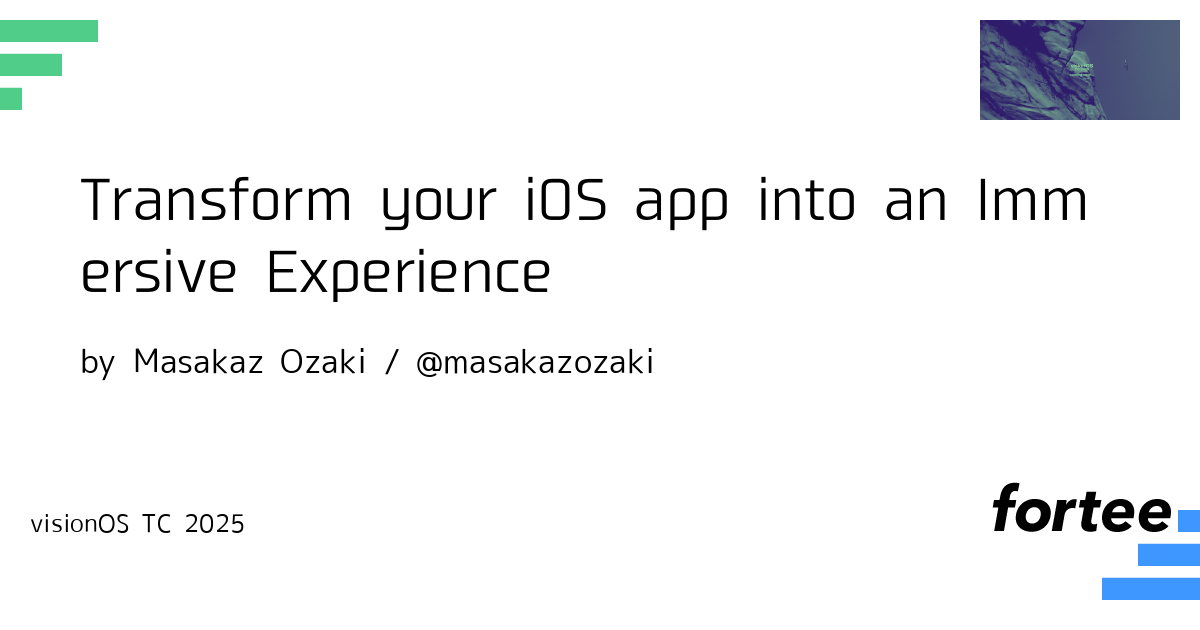 過去に日経空間版を手がけた尾崎が 2D, 文字ベースのコンテンツのiOS アプリをImmersive Spaceの体験に落とし込む方法について解説します。