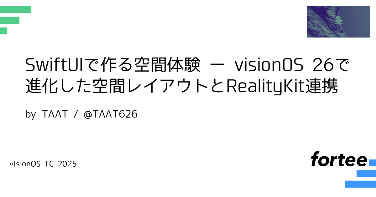 visionOS 26では、SwiftUIでの空間レイアウト構築がより柔軟で実用的になり、2Dで培ったUIノウハウを活かせます。