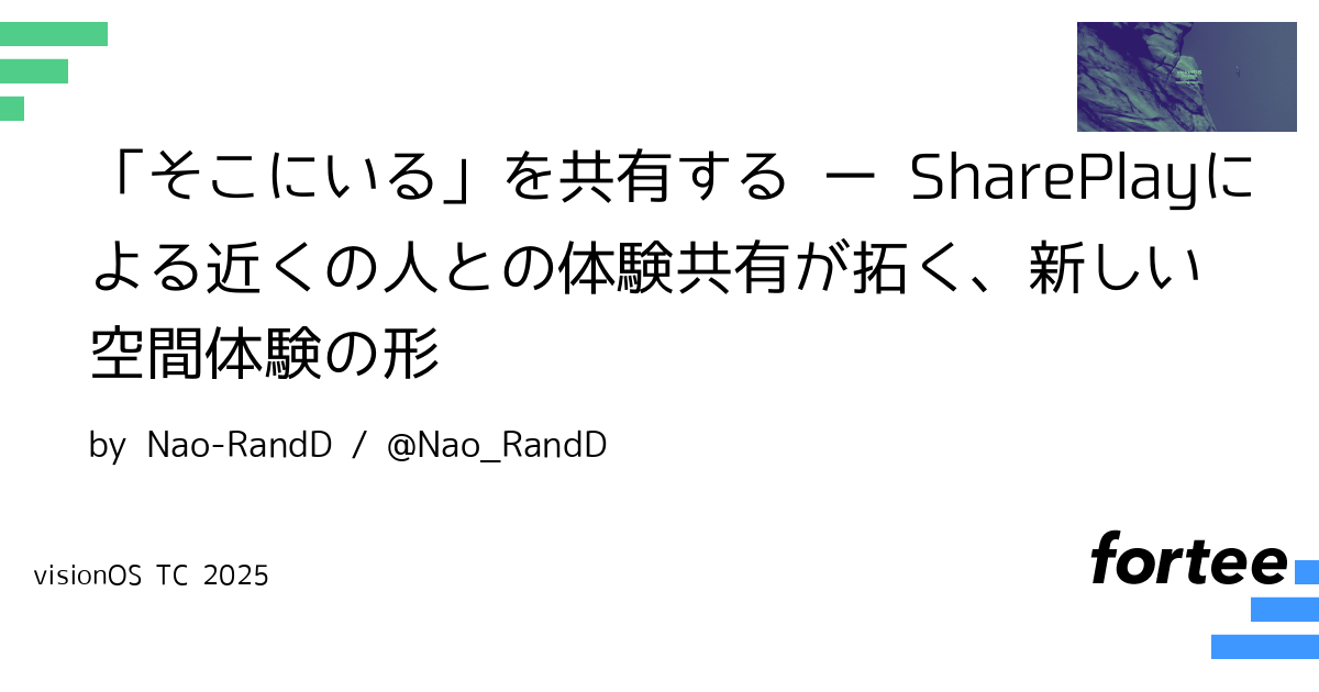 同じ空間で共同作業する、新しい体験共有の実装方法をお届けします。