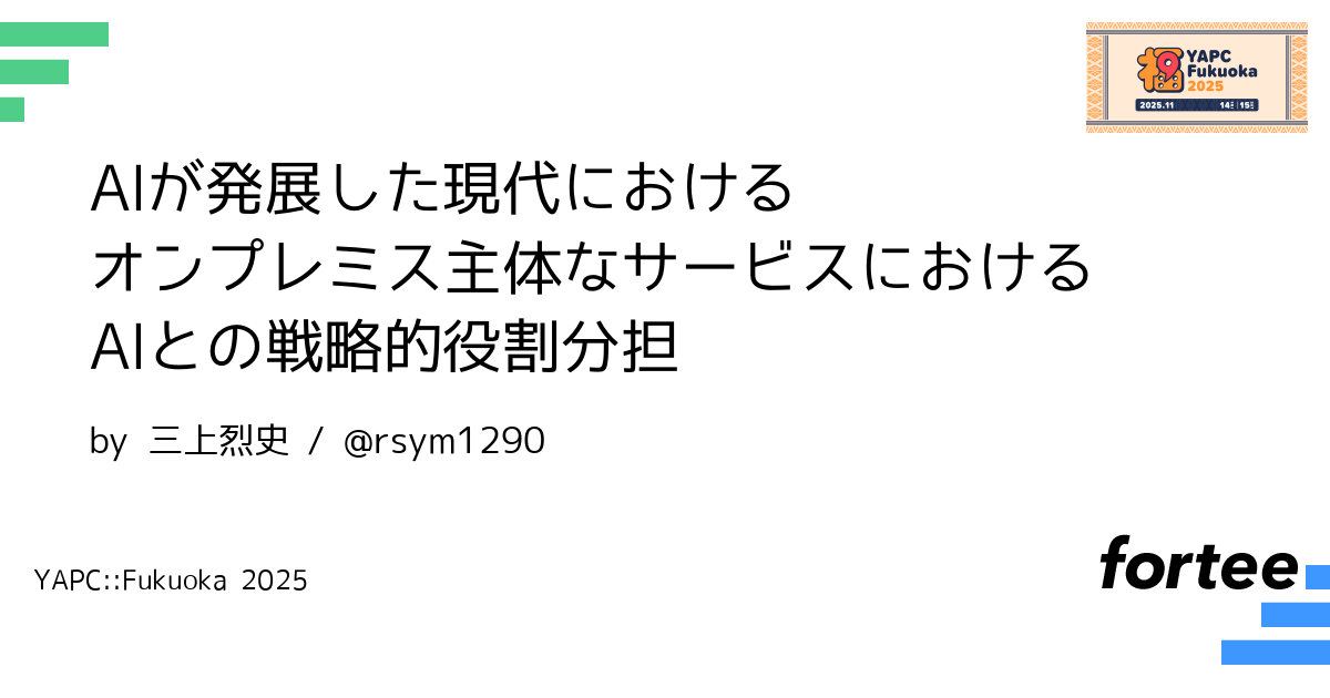 本トークでは、AIが急(きゅう)速に発展した現代において、オンプレミス主体なサービスではどのようにAIと役割分担・戦略を取れるのかお話しします。