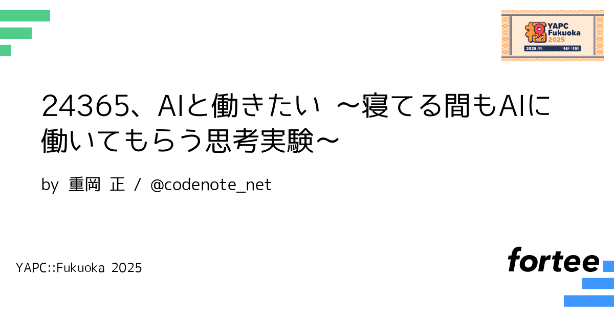 本LTでは「AIを活用して、24時間365日働けないか」という思考実験を共有します。もちろん、人間が24時間365日働き続けるのは不可能ですし、やるべきでもありません。しかし、AIをパートナーとして活用すれば、自分が寝ている間や休んでいる間も「何か」が進んでいる状態を作れるのではないでしょうか。
