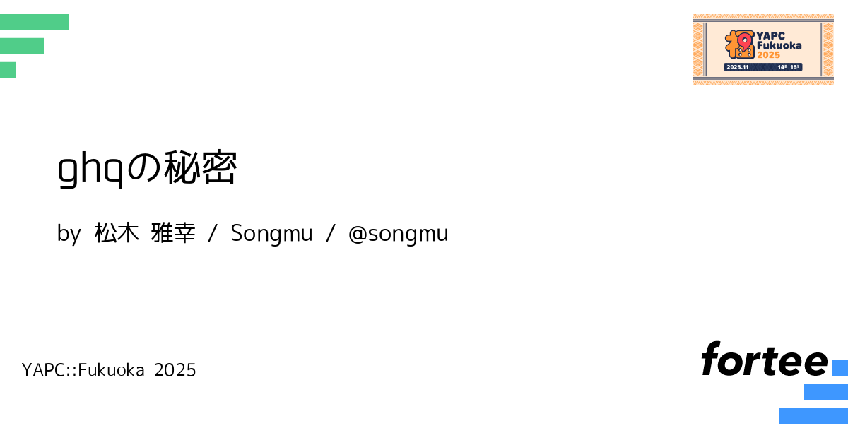 リリースから10年以上経ちますが、長年、ghqが何の略なのかは謎とされてきました。今回、YAPC::Fukuokaのテーマの「Q」にちなみ、その開発のルーツからひも解き、その秘密に迫っていきたいと思います。